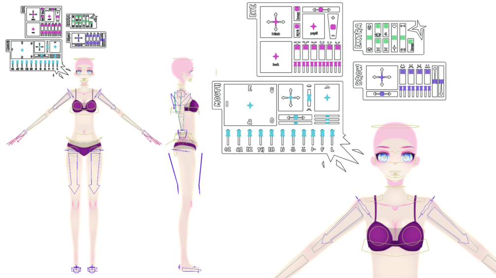 Lucky 8 is a model base for MMD and Blender! The anime-styled models were created with beginning animators in mind. They display a wide range of expression (shape keys / morphs) and control bones.